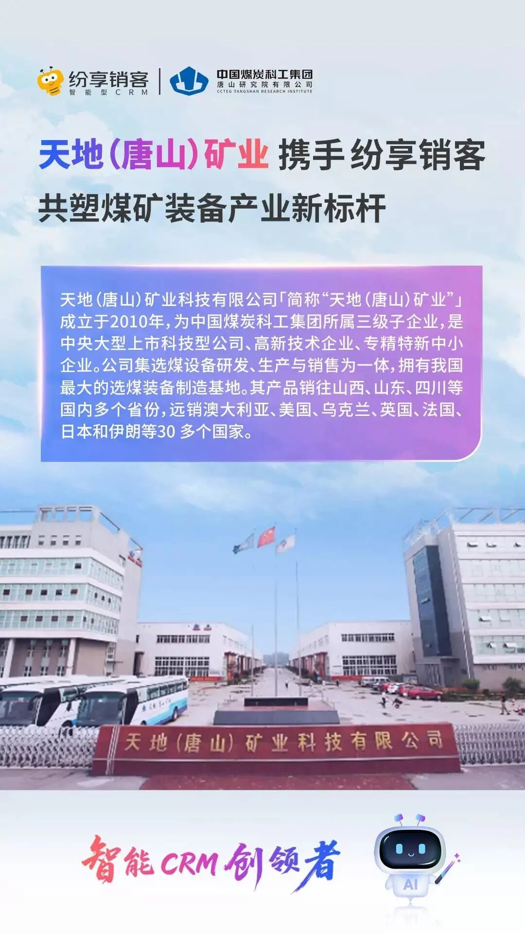 在选煤选矿行业竞争加剧、客户需求复杂多变的当下,天地(唐山)矿业经多维评估,选定纷享销客构建 CRM 体系,核心源于四大价值契合: