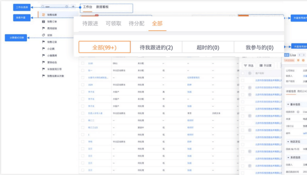 纷享销客的"线索工作台"设计充分考虑了销售人员的实际使用场景: