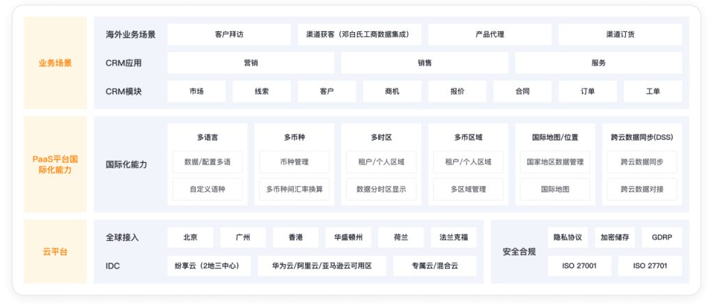 系统割裂风险:海外业务常需与国内ERP、财务等系统保持数据同步,CRM需具备跨云数据对接能力;