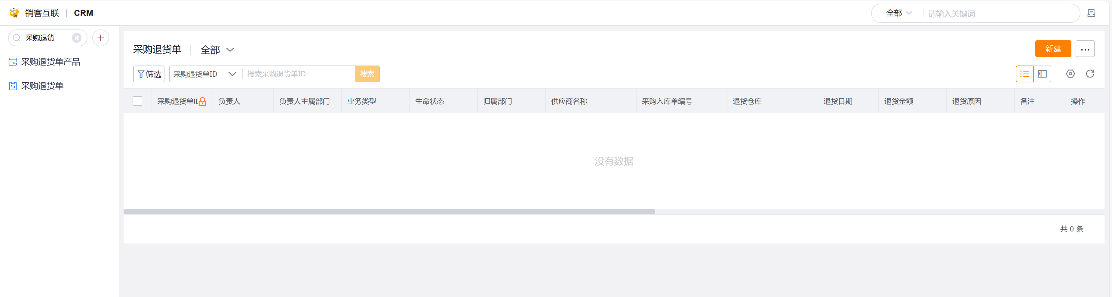 - 进入CRM,点击采购退货单,进入采购退货单列表页。