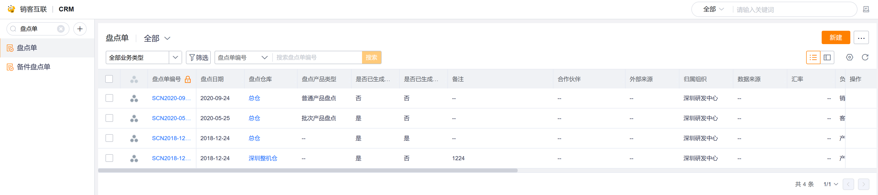 - 进入CRM,点击盘点单,进入盘点单列表页。
