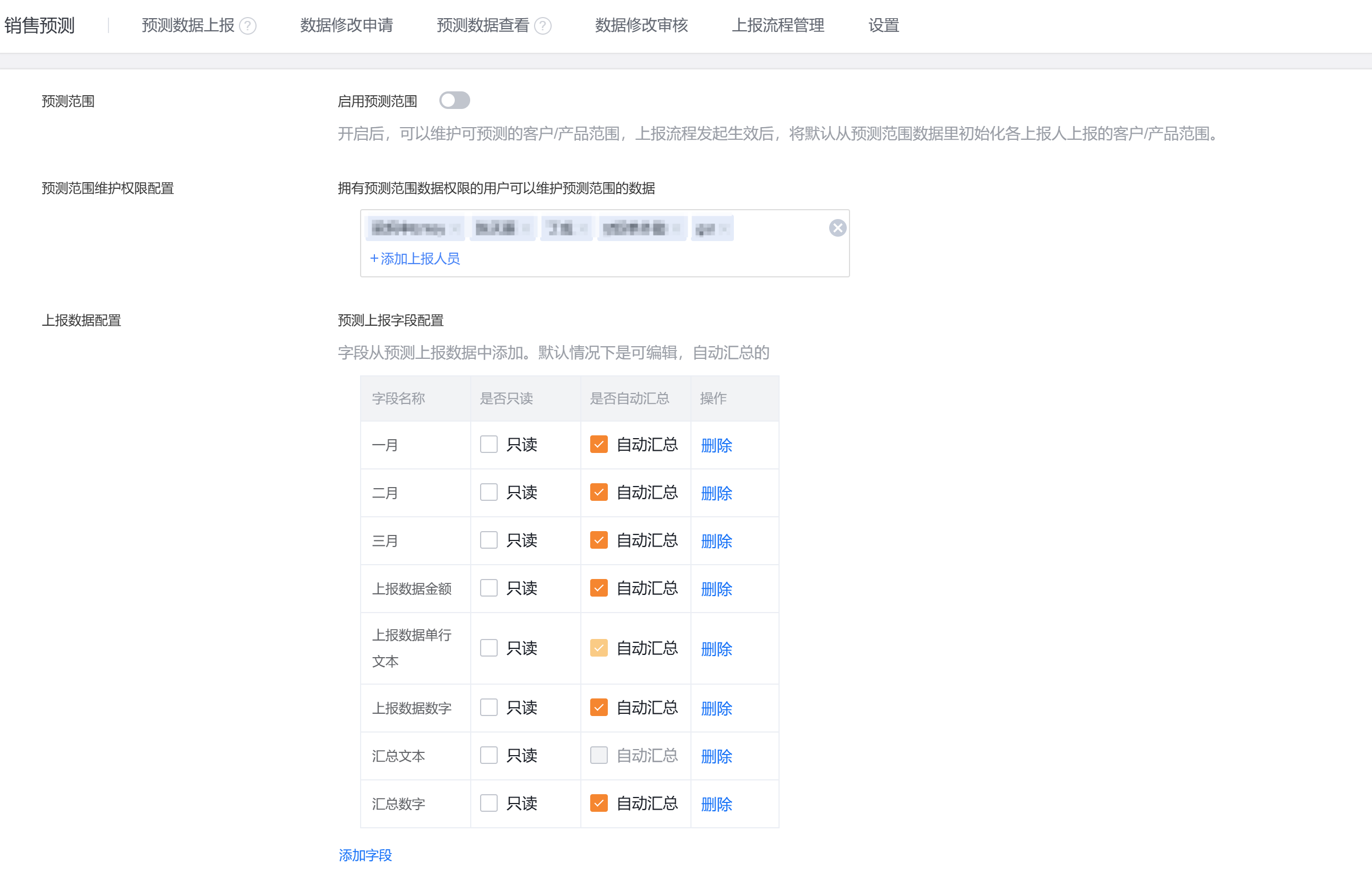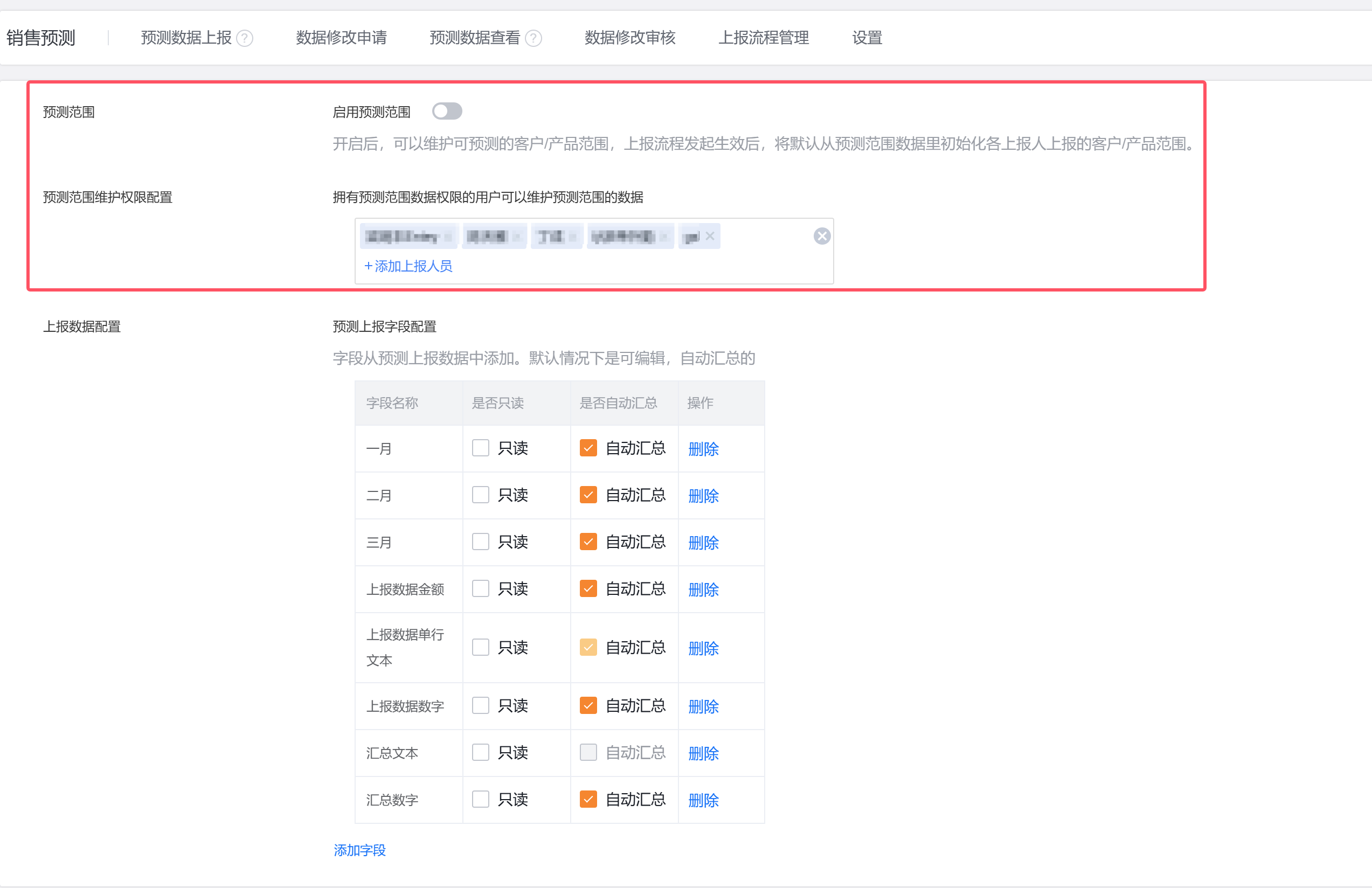- 进入设置后,可根据实际业务需要,选择是否启用预测范围;