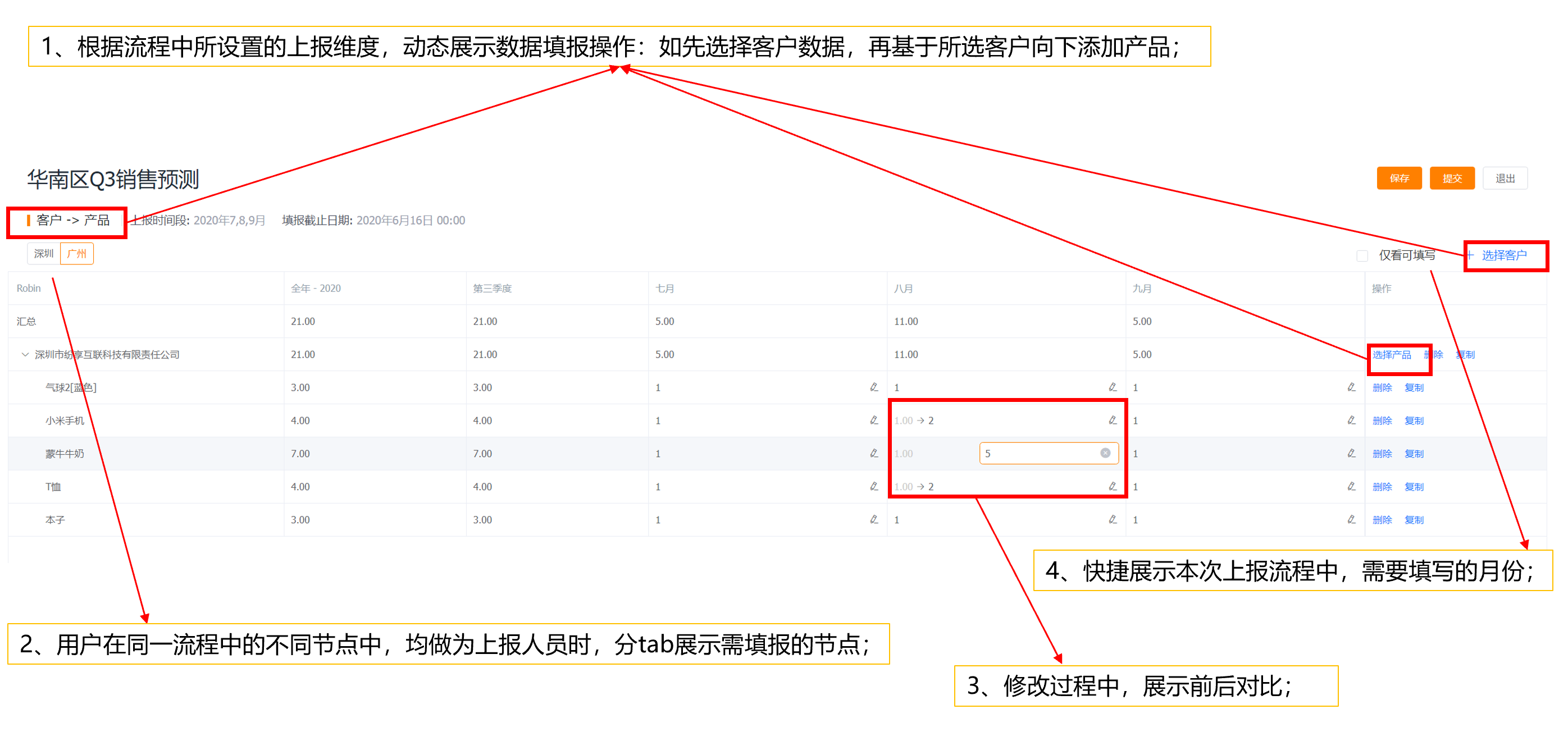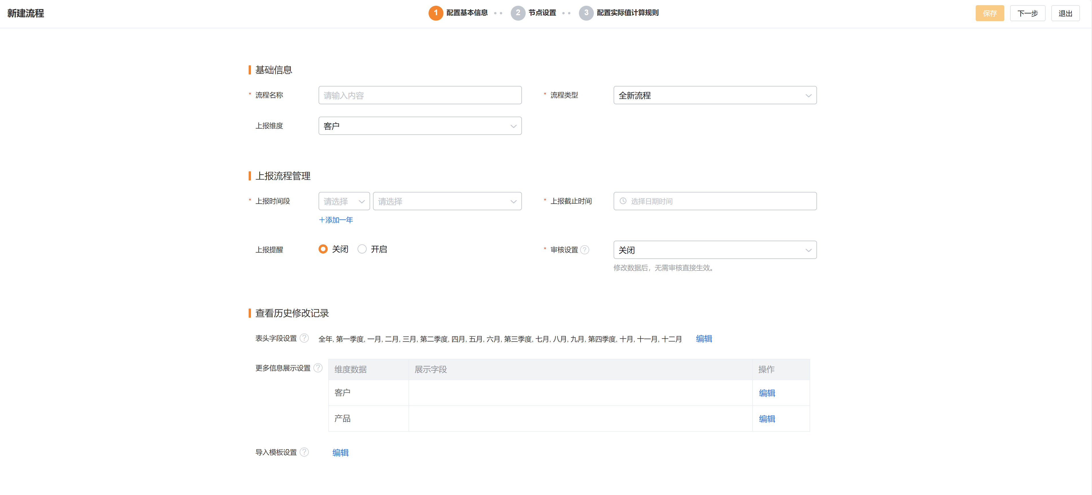 - 上报维度:上报时所基于的业务维度;如基于客户/产品的单一维度上报或先填客户再填产品的多层级维度上报;