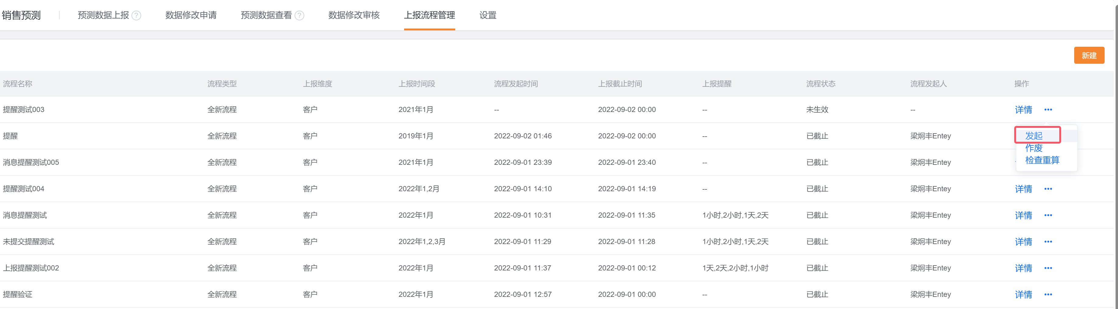 - 也可以后续在上报流程管理页面,发起未生效的流程。