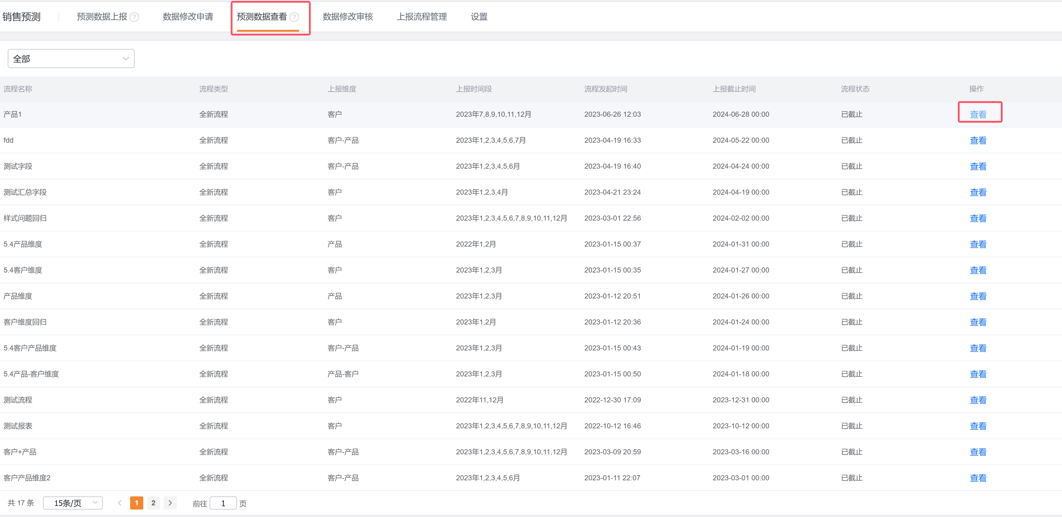 - 在预测数据查看列表中,选择需要查看的流程,点击【查看】进入详情页面。