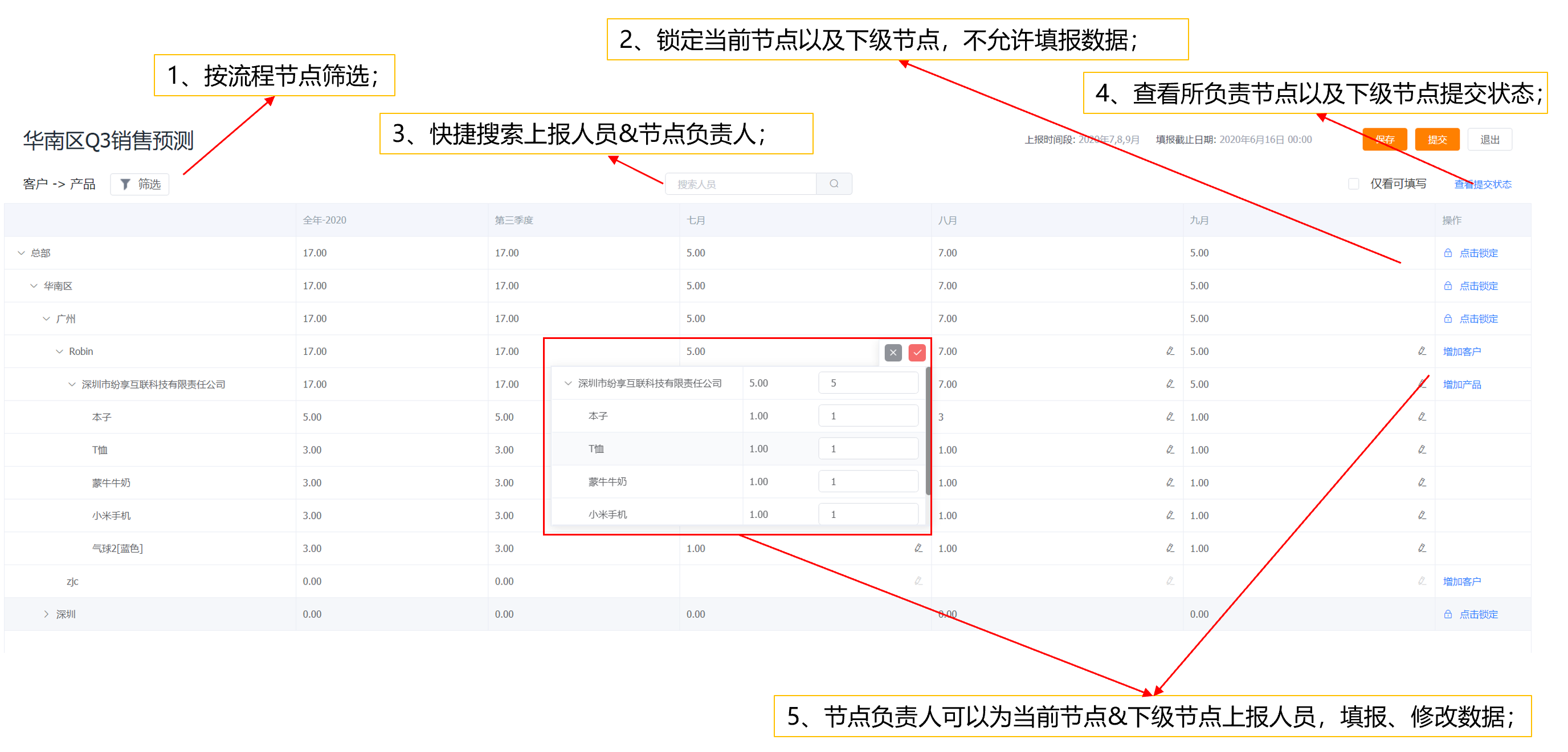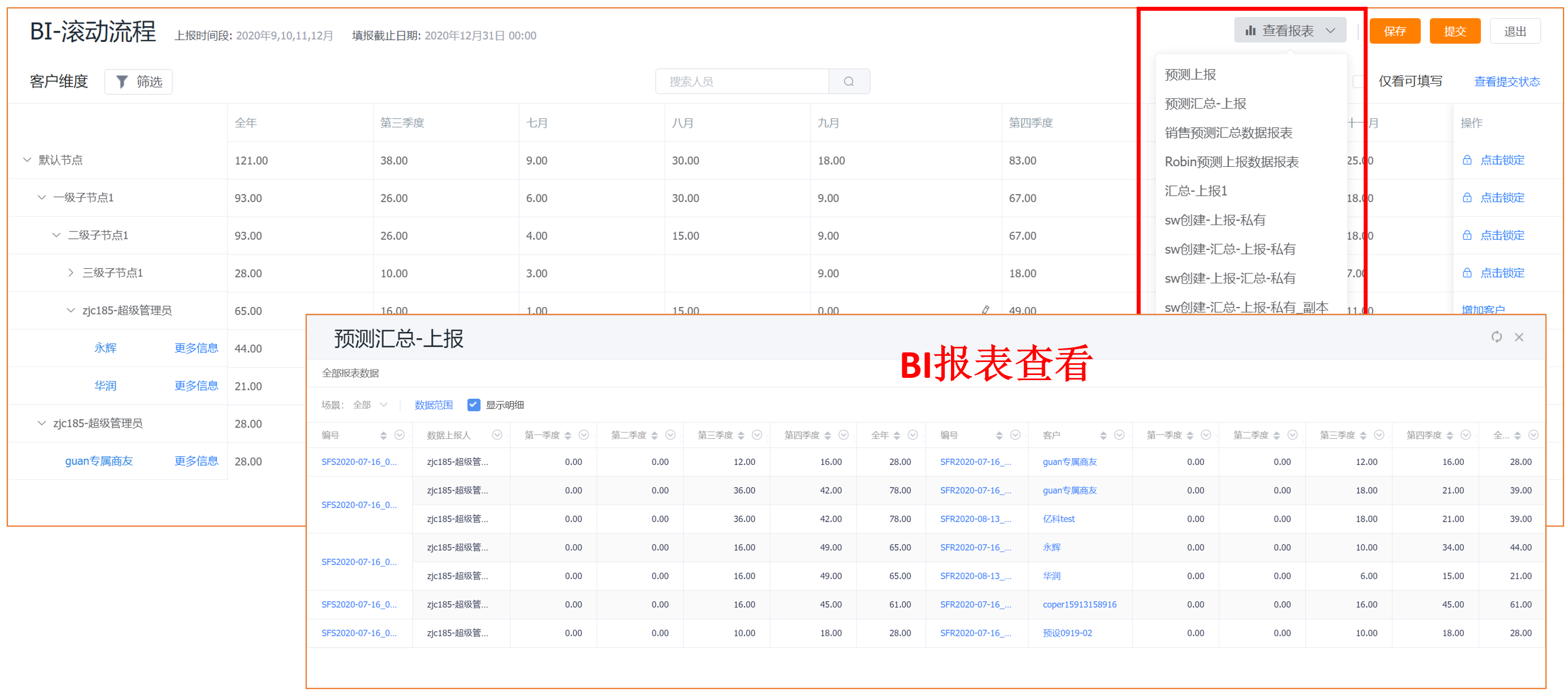企业通过销售预测应用,可设置多层级的预测数据上报节点;为销售人员提供多维度的表格式、滚动式数据录入体验;开放的api接口,支持将数据同步生产系统;同时无缝衔接BI模块,为企业高层提供准确实时的决策数据支撑。