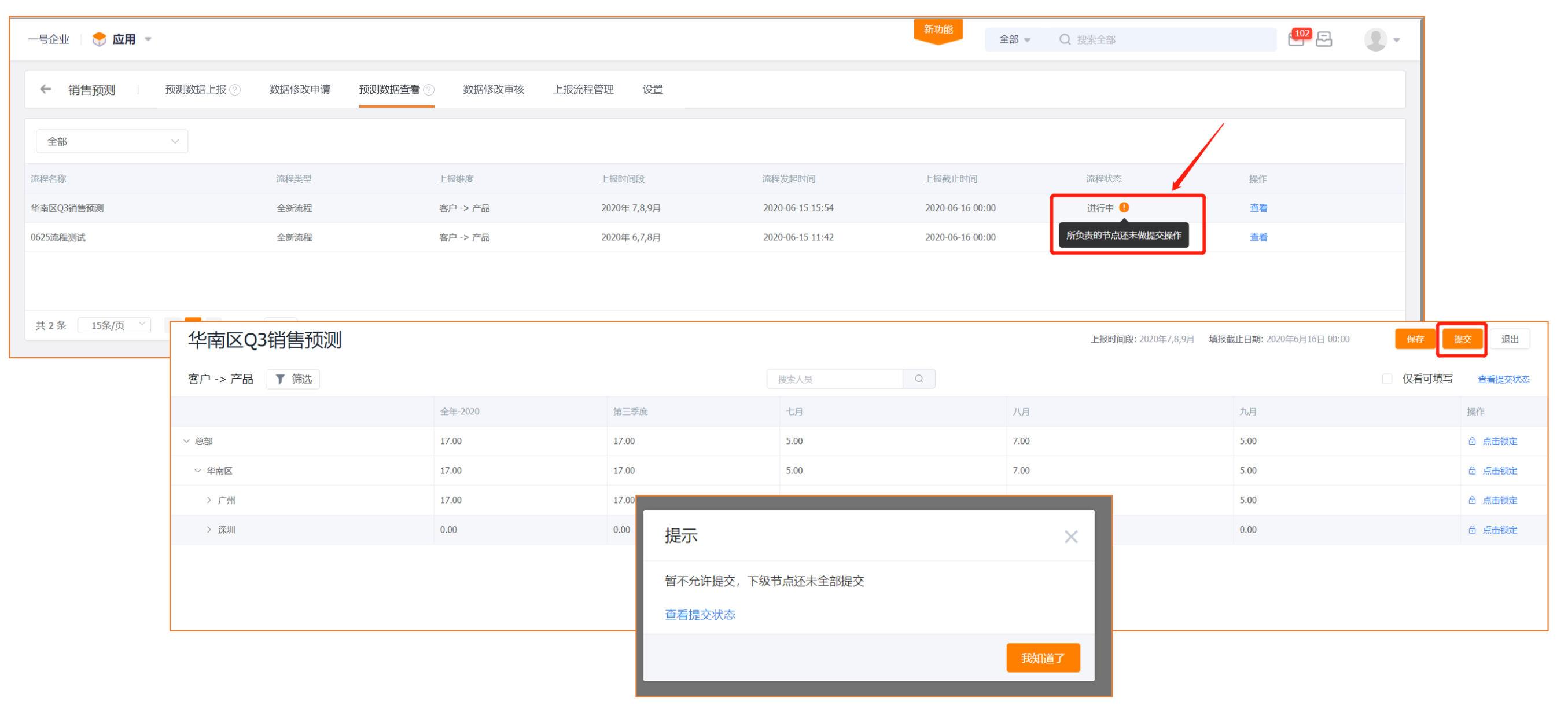 - 节点负责人在审核/修正完数据后,需要做【提交】动作,代表当前节点已完成上报任务;